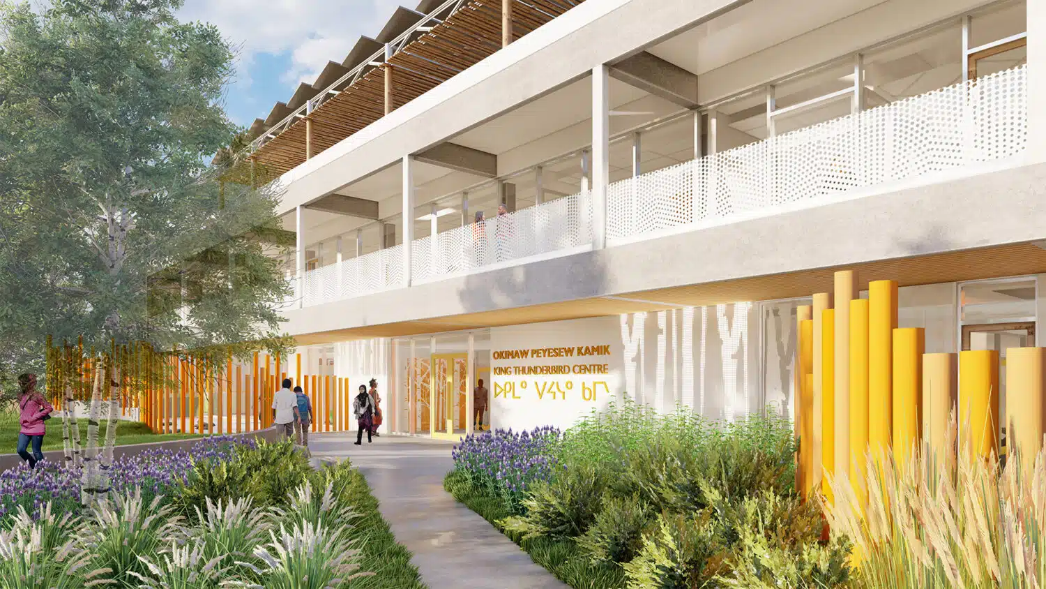 okimaw peyesew kamik (King Thunderbird Centre) is a culturally grounded community facility focused on healing, restoration, and protection for people experiencing chronic homelessness in Edmonton. Designed to support dignity, belonging, and long-term stability, the building reflects Boyle Street Community Services’ commitment to caring for the whole person. From the outset, Boyle Street Community Services set a clear vision: create a welcoming, durable, and operationally efficient building that can support vulnerable community members through an interdisciplinary model of care, where housing, health, mental health, peer support, and cultural services work together in one place. Supported by funding from Canada’s federal Green and Inclusive Community Buildings (GICB) program, the project team prioritized early collaboration to align design, funding requirements, and certification pathways. Boyle Street Community Services led the vision and drive to secure grant funding and achieve CAGBC Zero Carbon Building-Design (ZCB-Design) certification, with Stok supporting the team by helping translate their goals into a clear implementation strategy, certification roadmap, and coordinated process.